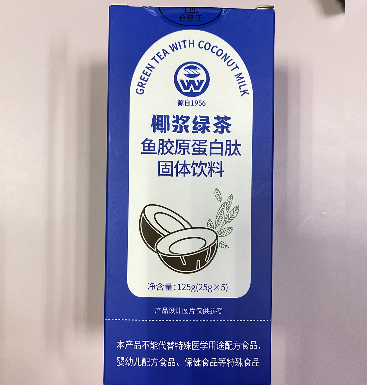 椰漿綠茶魚膠原蛋白肽固體飲料
